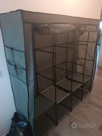 Vendo armadio smontabile con bacchette di alluminio e tela cerata per i ripiani e rivestimento in tessuto.
