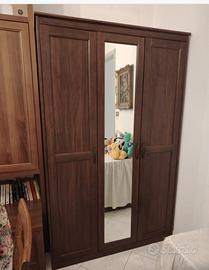 armadio 3 ante Ikea songesand colore legno come da foto in ottime condizioni usato per pochi mesi. dotato internamente di bastone e mensole, ha uno specchio sull' anta centrale.
