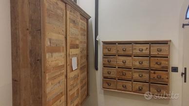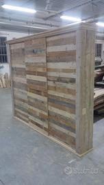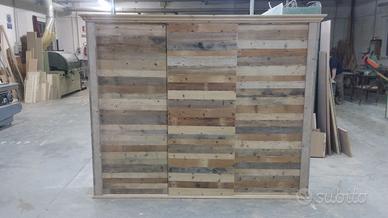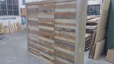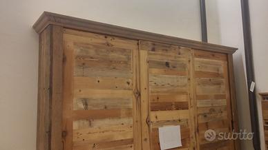 Armadio sospeso con 3 ante scorrevoli con serratura con misura lungh.250 prof.36.5 h 215 in legno di abete vecchio recuperato costruito interamente in pattina antica restaurata con 3 ante scorrevoli costruite con telaio e pannello inserito internamente con venature orizzontali completo di raddrizzanti parte posteriore in modo che le ante non si incurvino nel tempo. la parte in vista sarà tutta in legno vecchio. Tutto supportato con ferramenta idonea che verrà fissata a muro regolabile. Interno vuoto per contatori enel. fresata per apertura e chiusura delle ante completo di 2 serrature con cilindretto con apposite chiavi universali per poter aprire le ante (altre chiavi da calcolare a parte). con sportellino laterale per riporre la chiave che servono in caso di emergenza. compreso di finitura cerata neutra trasparente franco fabbrica iva non comprendente. il mobile è già stato prodotto e venduta su commissione non teniamo magazzino ma essendo un laboratorio artigianale la costruiamo in base alle proprie esigenze e fattezze anche mobili e quant'altro su specifiche ed esigenze del cliente. direttamente dal produttore per dubbi e chiarimenti contattateci.. ASTENERSI RIVENDITORI E COMMERCIANTI
