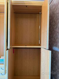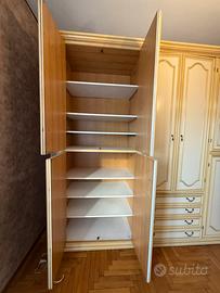 Composto da più ante battenti e una pratica cassettiera centrale con 4 cassetti, offre ampio spazio per abiti, biancheria e accessori. Le maniglie in stile classico completano l’estetica ricercata del mobile.