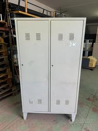 Vendo armadio spogliatoio in ferro 2 ante Buono stato Chiusure da sostituire ( per mancanza chiavi) Misure: 180 altezza 100 larghezza 50 profondità Disponibili vari pezzi
