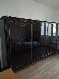 Armadio stile barocco in legno nero lucido con rifiniture oro, tenuto in buone condizioni. Ritiro e smontaggio a carico dell'acquirente