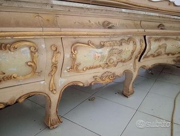 Per i motivi di spazio vendo armadio stile barocco veneziano, 5 ante tutte dipinte a mano, decorazioni dorate, è già smontato, parte di base invece rimane intera, non smontabile, tre casetti molto ampi, stile bombato presentano usura sulla superficie, (foto), lunghezza totale del armadio 3 metri altezza 180 cm. Trasporto a carico dell' acquirente.