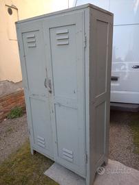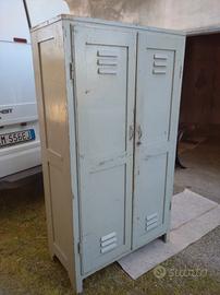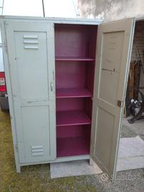 armadio in legno da officina anni '60 in legno. piani interni regolabili. misure 190×100×50