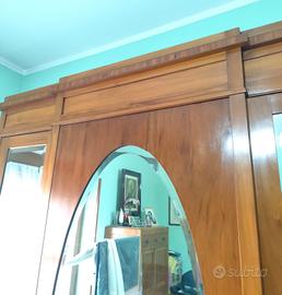 Armadio stile liberty inizio 900 tre ante con specchio, nella parte bassa tre cassetti , interno bastone per appendere abiti . fa parte di una intera camera da letto . vendita con trasporto carico acquirente