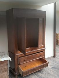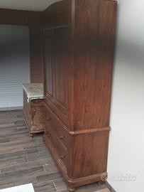Armadio Stipo Antico in Legno Massello Stile Rustico con Cassettiera misure 208 130 50