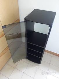 Un comodino con anta in vetro Kenwood costa 40 euro. Dimensioni armadio nero 32,5-39-93.