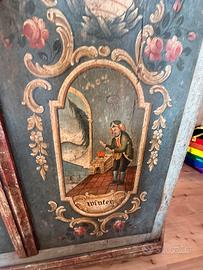 Armadio antico dipinto con motivo raro delle quattro stagioni, originale d’epoca integro in ogni sua parte. Misure 130x h. 184x 52 di profondità