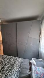 vendo armadio con ante scorrevoli in vetro marca tomasella per cambio casa. Pagato nel 2022 euro 4500 . l'armadio è in perfette condizioni colore grigio perla interni grigio antracite. Le ante sono in vetro ed ogni anta ha quattro vetri, due grigi lucidi e due grigi opachi.
