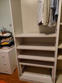 Vendo armadio a 6 ANTE BATTENTI CON SPECCHIO CENTRALE L.240 P.52 H.236. Noi lo abbiamo sempre usato solo con 4 ante, ma sono disponibili anche le altre 2 ante per ricomporlo come da modello di fabbrica. Sono disponibili anche i due cassettoni interni. In foto sono evidenziati i difetti su due cerniere e sui pannelli posteriori.