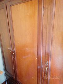 Armadio in legno 3 ante di cui 1 anta a 3 ripiani e 2 ante per apoendere