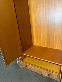 Armadio in legno e midollino ottimo stato alto 205 largo 103 profondità 57 con due cassetti 150 euro