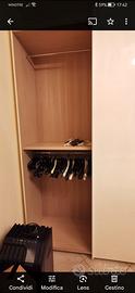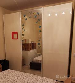 Armadio tre ante scorrevoli bianco lucido con cassettiera e ripiani Larghezza 2,70 Altezza 2,50