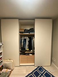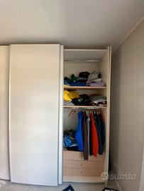 Vendo armadio a tre ante scorrevoli di colore beige del 2010, ma in ottime condizioni, a euro 450 trattabili. L'armadio nella sua parte centrale e di sx ha 3 cassetti con 2 ripiani mentre, la parte di dx è caratterizzata da 8 ripiani. Le misure sono: altezza 260 cm, lunghezza 272 cm, profondità cm 62 e nella parte di mezzo 67 cm, larghezza ante cm 90. Per maggiori informazioni contattare Enrico al 3472912410