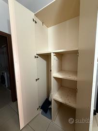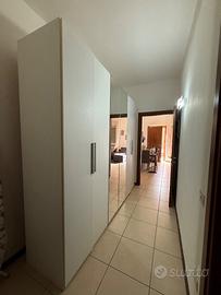 Armadio tre ante in legno, con due ante centrali specchiate.
