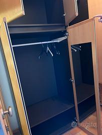 Armadio in legno rovere con 3 ante e 4 cassetti. Specchio all’interno dell’ anta e palo per grucce. Misure: altezza 236 cm, larghezza 140 cm, profondità 60 cm. Ritiro a Fornace.