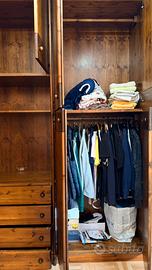 Vendesi splendido armadio a tutta parete realizzato in legno massiccio di alta qualità (pino/abete tinto), caratterizzato da una struttura estremamente robusta e duratura. Non si tratta di un mobile industriale in truciolare, ma di un pezzo solido, ideale per chi cerca resistenza e calore naturale per la propria camera.