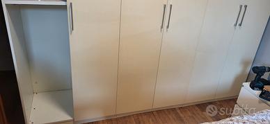 vendo armadio 6 ante bianco lacato 2450 alto e 2700 largo schienale nuovo da 10 mm nobilitato con casetone a 3 ripiani su binari (smontato)