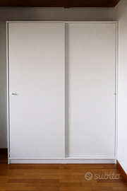 Vendo anche separatamente due armadi. Il primo è un armadio a ponte a 6 ante battenti con maniglie pratiche e sottili, lunghe fino a metà anta è di color antracite . Le sue misure sono : 308 x 52 x 236cm (larghezza, profondità, altezza) Il secondo armadio è con ante scorrevoli , bianco. Le sue misure sono 117x55x176 cm (larghezza, profondità, altezza) Hanno qualche piccolo difetto causa usura e / o montaggio.