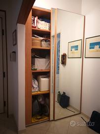 Armadio/ripostiglio due ante specchiate scorrevoli con bordo in ciliegio.