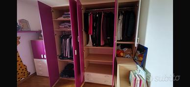 Armadio camera per bambina, ben tenuto, completo di svariati ripiani, zona appendiabiti, vari cassetti capienti.