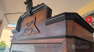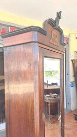 Armadio italiano primi 900 in noce stile Umbertino 1 anta a specchio originale cassetto interno e ripiano con asse appendiabiti misura 115x63 altezza massima 225 lo stemma nero si può facilmente eliminare.. M&P Antichità siamo un negozio specializzato in antiquariato vintage e shabby vendita al dettaglio e all ingrosso scarichi settimanali. Nel nostro negozio potrete trovare oltre 500 articoli d arredamento, abbiamo una vasta scelta di como comodini tolette armadi letti vetrine vetrinette credenze servanti angoliere librerie tavoli tavolinetti sedie poltrone poltroncine divani lampade lampadari tappeti scrivanie scrittoi secretere ribaltine consolle quadri cornici specchi cassapanche bauli oggettistica varia idee regalo e molto altro ci troviamo a Roma zona Castelverde via Massa San giuliano 26b POSSIBILITÀ DI CONSEGNA E SPEDIZIONE IN TUTTA ITALIA