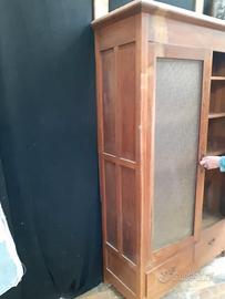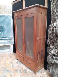 Armadio vecchio in legno con vetri