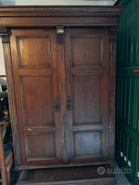 Armadio in legno antico dimensioni, altezza 1,95 cm, larghezza 1,30 cm, profondità 60 cm NON SPEDISCO CONSEGNA A MANO