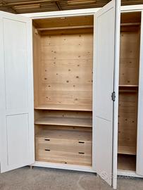 Armadio laccato tutto in legno massello, interni naturali, lavorazione e finitura artigianale