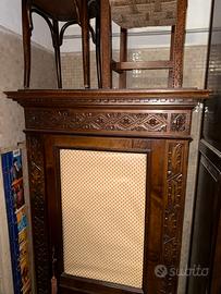 Vendo raffinato armadio-vetrinetta antico in legno di noce massello, stile Luigi Filippo (1830-1848), metà Ottocento. Elegante pezzo con intagli floreali e dettagli originali. dimensioni 93 x58 h.170 prezzo trattabile