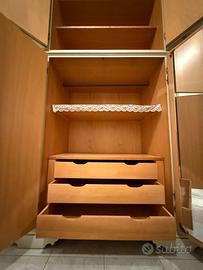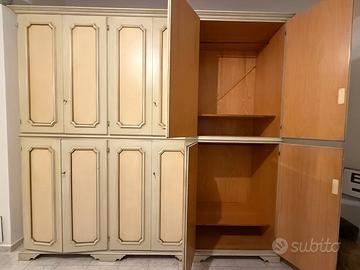 Splendido armadio antico in legno massello, caratterizzato da linee semplici ed eleganti. Misura 280cm in altezza, 300cm in larghezza e 60cm in profondità. Perfetto per arredare una camera da letto o un soggiorno con stile. L'armadio presenta 12 ante (6 nella parte superiore e 6 nella parte inferiore), 3 cassetti nella sezione centrale e 14 ripiani complessivi, dotato di specchio interno nella sezione centrale. L'armadio è ben tenuto e molto ampio, offre ampio spazio per riporre i tuoi abiti.