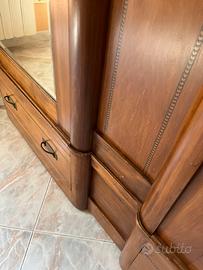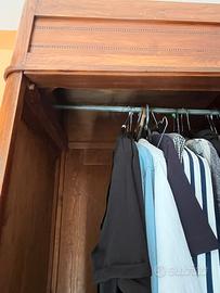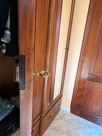 Armadio vintage anni ‘20 in legno di ciliegio , 2 ante con specchi originali, 2 cassetti, barra appendiabiti.