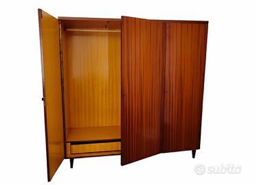 Vendesi splendido armadio vintage originale degli anni '60, caratterizzato da una bellissima finitura in legno venato lucido. Un pezzo di design retrò perfetto per amanti del modernariato o per arredare camere da letto e ingressi con uno stile unico.