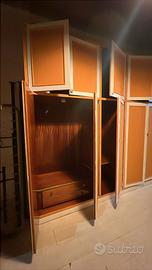 Vendo armadio capiente in stile vintage, struttura solida e ancora in ottime condizioni. 📏 Dimensioni: •LUNGHEZZA: 253 cm •PROFONDITA': 59 cm •ALTEZZA: 240 cm 🧡 Caratteristiche: •Composto da più moduli con ante •Spazio centrale ampio ideale per appendere vestiti •Ripiani interni + cassetto •Colore caldo (arancio/legno) con profili chiari •Molto capiente e robusto Perfetto per chi cerca un armadio grande.