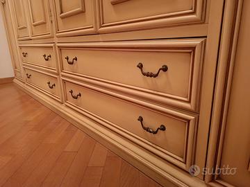 Armadio artigianale classico 6 ante e 4 cassetti in legno massello decorato.