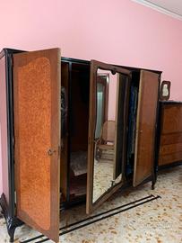 Armadio 3 ante con specchiera centrale. Interamente in legno massello con inserti in radica
