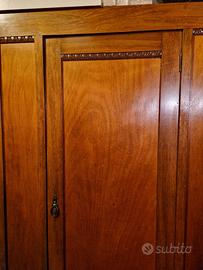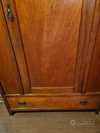 Armadio in legno vintage ad un'anta con ripiano interno e cassetto esterno.