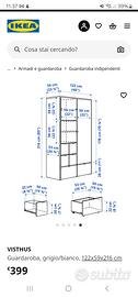 Buongiorno vendo armadio VISTHUS Ikea,nuovo mai montato. Ritiro a carico dell'acquirente
