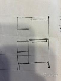 All'interno due ripiani e due tubi sppendiabiti e quattro sconparti come da disegno