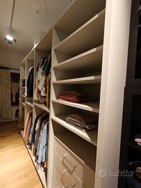 armadio senza ante da utilizzare per cabina armadio come da foto con ripiani , aste e cassettiera 4 cassetti usato in buone condizioni - di marca ottimo materiale