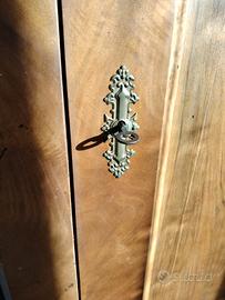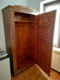 E' un armadio in legno massello con impiallacciatura sulla parte esterna, perfettamente restaurato circa 30 anni fa e ancora in buono stato, sono evidenti solo alcuni segni di usura dovuti al passare del tempo. Le dimensioni di ingombro sono circa 48x101x197 cm.