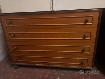 Vendo armadio in legno a 4 ante misure larghezza 210 altezza 270 profondita 59+ cassettiera 4 cassetti misure larghezza 111 altezza 79 profondita 47, smontaggio e trasporto a carico dell’acquirente. Pagamento in contanti al ritiro, l’oggetto viene venduto nello stato in cui si trova, visto e piaciuto. Note: due cassetti presentano instabilità del fondo ma se sistemati scorrono perfettamente.