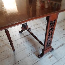 Tavolino a bandelle in noce scura. Di epoca Vittoriana. Inglese. Ha un piccolo difetto come nella foto Chiuso ha le seguenti misure: larghezza 90 profondità 15 altezza 75 Aperto ha le seguenti misure: larghezze 120 profondità 90 altezza 75 È una ottima soluzione salva spazio Può essere un tavolo jolly Ritiro a domicilio
