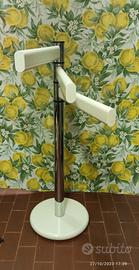 Set per arredare il bagno, composto da mensole, portasalviette, portarotolo e portascopino. Tutto in legno laccato bianco e acciaio.