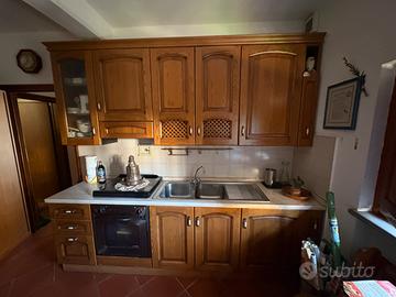 Cucina in legno massello composta da: Cucina (altezza=2,48m/larghezza=2,69m). Mobile dispensa (altezza=2m/largezza=2m). Mobile dispensa piccolo (altezza=2,09m/larghezza=1,05m). Per informazioni non esitate a contattare,prezzo trattabile.