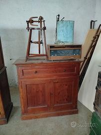 Vendo arredamento per inutilizzo, 4 panche artigianali in legno, 2 credenze antiquariato, botte in legno, 3 valigie, filalana antico, stereo e lampadario.