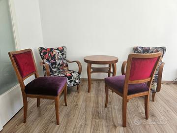 A causa di un trasloco, sono in vendita due poltrone Art Deco visibili nelle foto, insieme al tavolino abbinato.