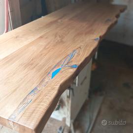 Realizzazione di qualsiasi elemento d arredo con legno pregiati come mensole lavabo, mensole, tavoli, tavolini, librerie, scrivania, consolle, scale, top,mobili bagno, mobili TV e molto altro con possibilità di personalizzazione con inserto in resina per interno e esterno per creare un arredo completamente unico e personalizzato per maggiori informazioni scrivetemi meglio whatsapp