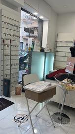 Vendo arredamento per chiusura attività di profumeria. Banconi, torrette, scaffalature con mensole in vetro regolabili e cassettone, in moduli larghi 1 metro, vetrina, cassettiere per banco make-up, espositori, numerosi ganci per accessori da appendere, cestelli per offerte, barriera antitaccheggio funzionante con rotoli di taccheggi in regalo. A chi interessato includo banco make up Astra e Bellaoggi.