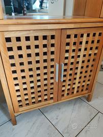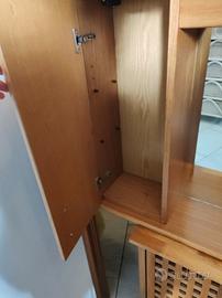 Mobili bagno così composti: Sottolavello alto 60x66 con 2 ante e foro centrale per il sifone Specchiera 65x100 con 2 ante ai lati e 2 ripiani interni. 2 luce e presa Specchio 50x55 Mobili abbinati sia per colore che per le maniglie identiche.